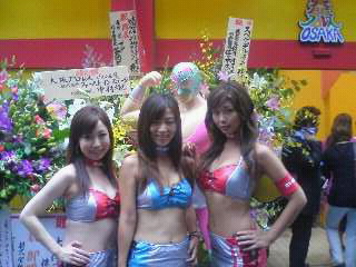 今日は大阪プロレスのミナミにリングオープンということで、大阪プロレスイメージガールのえっちゃん、かぁこちゃん、まゆまゆでオープニングレセプション参加しました★