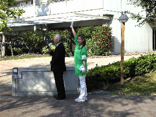 あみ~ごと姉~ごは候補者と一緒にたくさんの拍手を浴びながら、太鼓の音と共に大きく手をふり、ステージまでの道を一歩一歩、力強く進みました!!